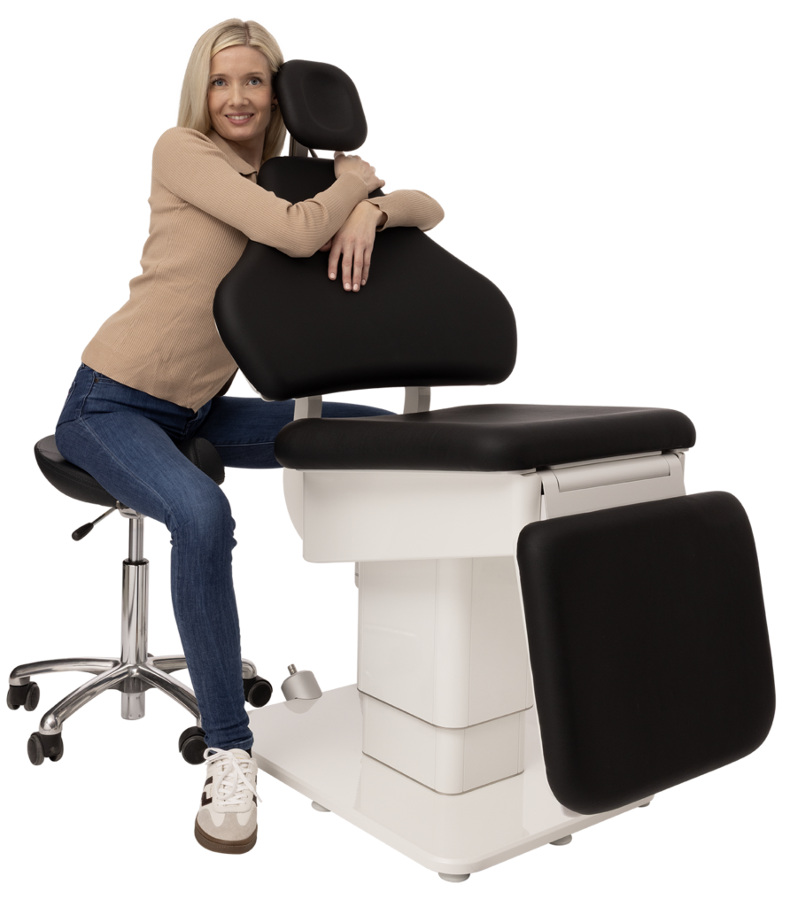 HEKA+ patientstolen er udviklet med fokus på naturlig støtte til ryg og nakke, så patienten ligger roligt og behandleren får fri adgang. Stolen er kompakt og fleksibel, så den passer ind i moderne klinikrum og understøtter et effektivt workflow.